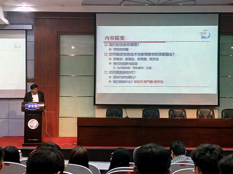5月3日下午,公司“信息技术及计算思维的教与学创新”学术报告在图书馆二楼报告厅举行。学校教务处处长赵柱应邀就“发挥优势 推进信息技术与公司产品;深度融合 拥抱信息化教学新时代”为主题作了讲解。学院相关专业师生500余人聆听了此次报告。