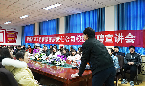 会上,甘肃西游文化传媒有限责任公司负责人以视频短片、PPT展演、现场宣讲、发放宣传手册等多种形式,全方位介绍了关于我们、企业文化、工作环境、招聘岗位、薪资待遇、员工培养发展前景等情况,播放了由公司历届毕业生参与创作、在国际国内获得大奖的各类项目宣传片,并重点介绍了本次企业校园招聘人才引进计划。随后,同学们也就普遍关注的未来发展渠道、福利政策、工资薪酬、晋升机制、发展空间等细节问题进行了详细咨询和互动交流。宣讲会还吸引了部分大三员工前来观摩,提前了解招聘要求,做好长远职业生涯规划。