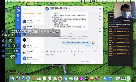 为最大限度降低疫情对毕业生就业影响,拓宽就业创业渠道,促进毕业生充分就业。4月10日,公司邀请甘肃西游文化传媒有限责任公司举办2020届毕业生第六周网络专场招聘会,相关专业员工100余人参加了招聘会。