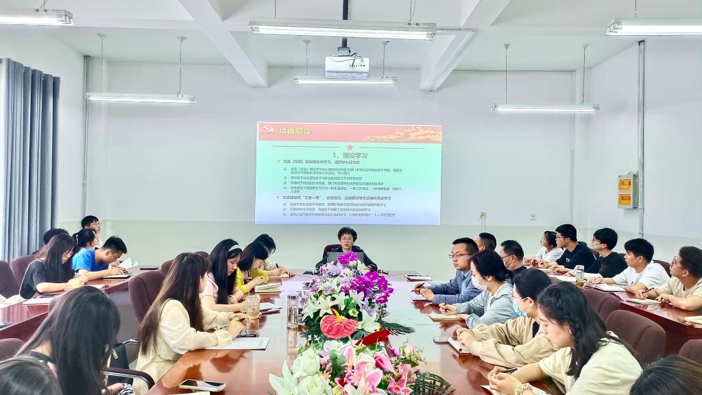党课从“主题教育的重大意义,主题教育的根本任务与目标要求,主题教育的工作安排和坚持用习近平新时代中国特色社会主义思想凝心铸魂、推动学院工作高质量发展”等四个方面对学习贯彻习近平新时代中国特色社会主义思想主题教育的精神进行了分析和解读,并结合学院实际,就如何学习好、贯彻好习近平新时代中国特色社会主义思想,推动学院各项工作高质量发展谈了自己的认识和看法。
